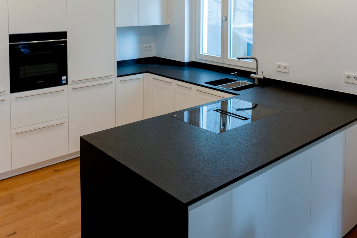Nero Assoluto / Zimbabwe vereint tiefschwarze Eleganz mit zeitloser Ästhetik – perfekt für stilvolle Wohn- und Objektgestaltungen, bei denen Naturstein zum Blickfang wird.