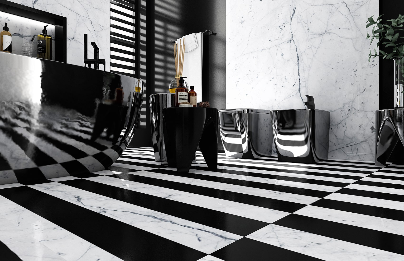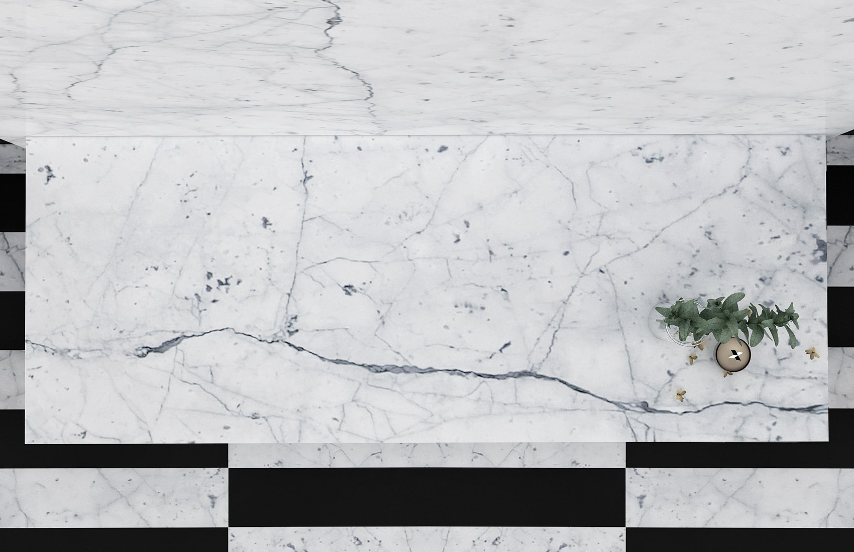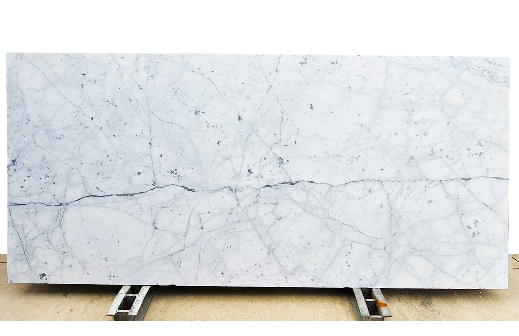 Bianco Carrara – klassischer weißer Marmor aus Italien mit grauen Adern. Elegant, zeitlos und ideal für Böden, Wände und Luxusprojekte.