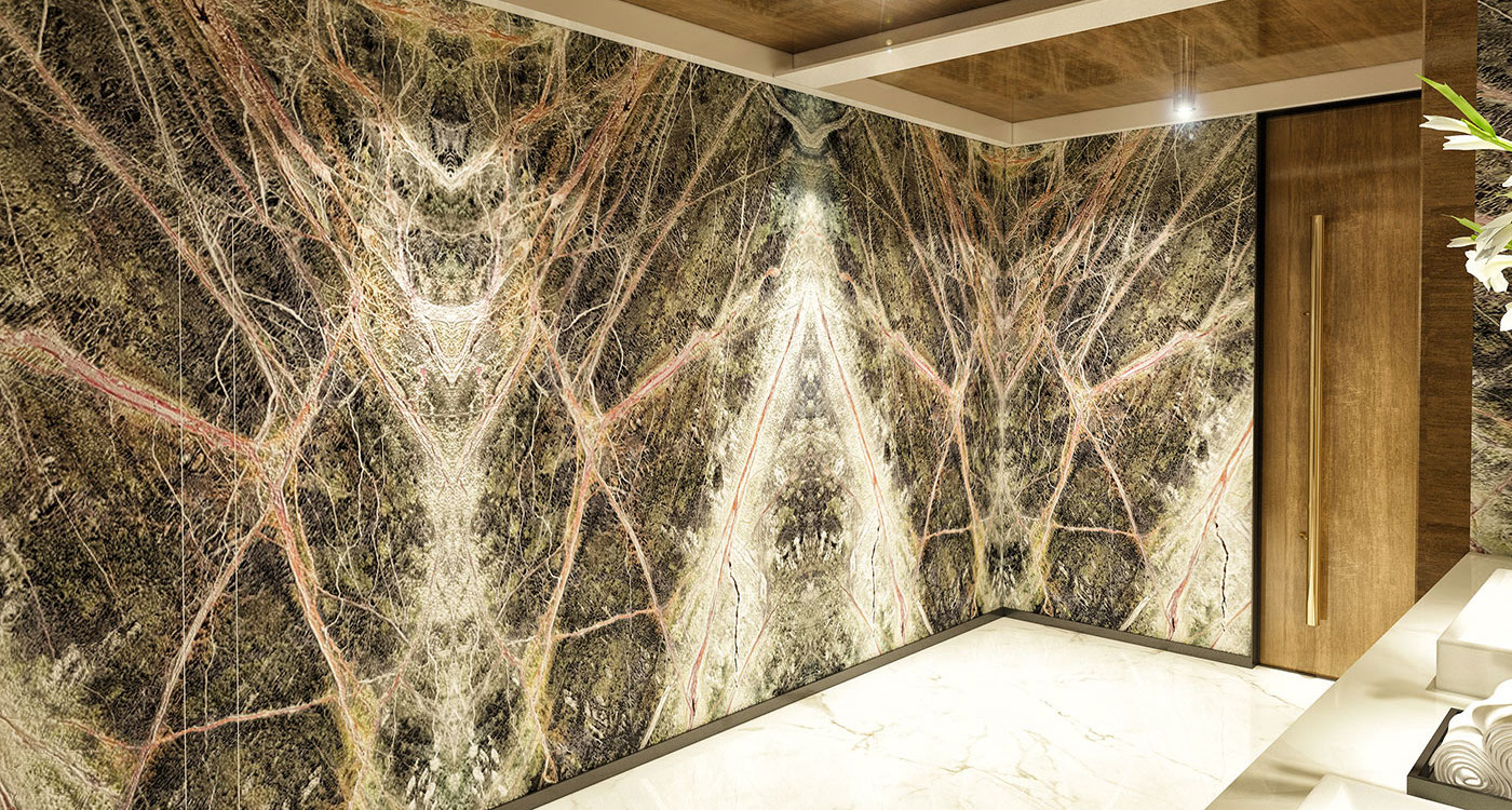 Forest Green Marmor – charaktervoller Naturstein in sattem Grün mit lebendiger Maserung. Elegant, robust und ideal für exklusive Innenarchitektur.