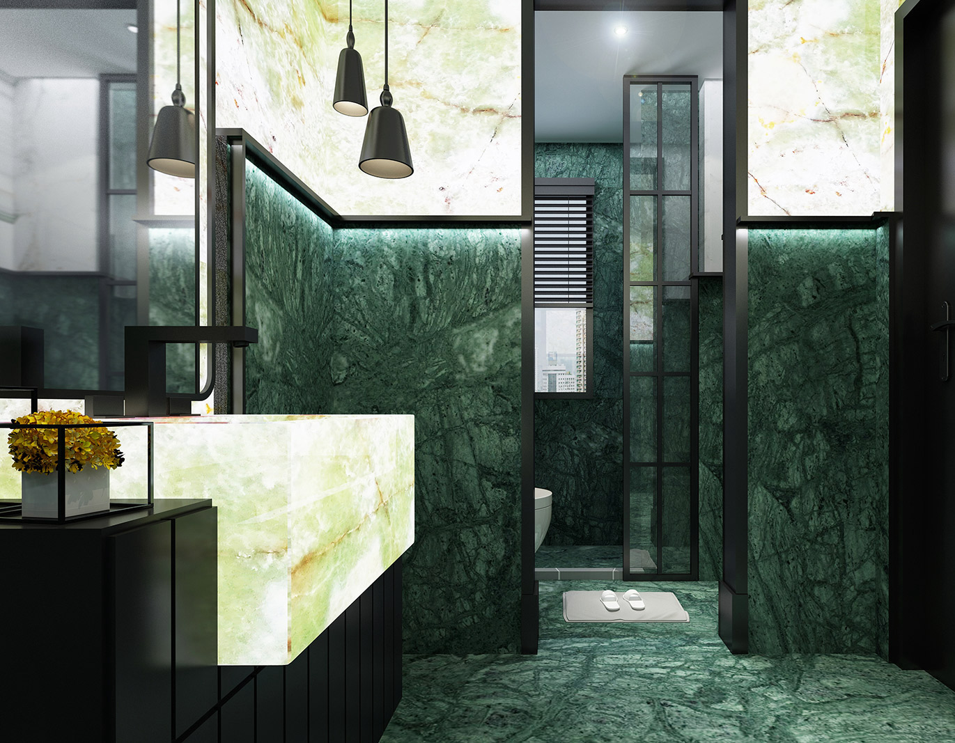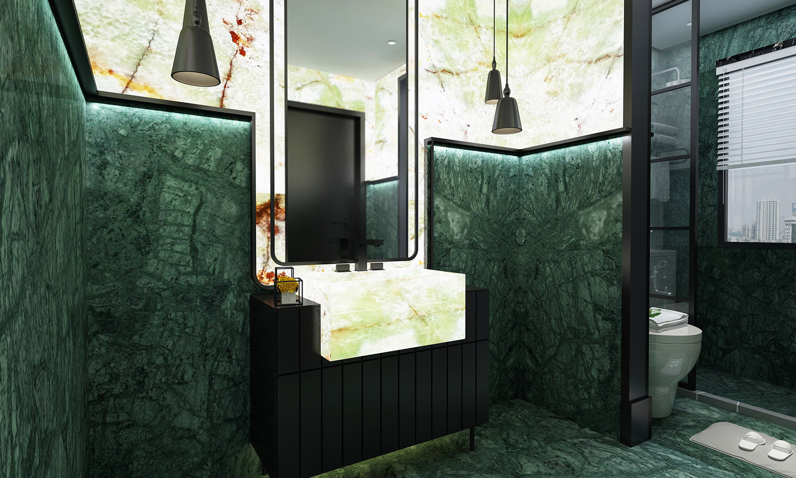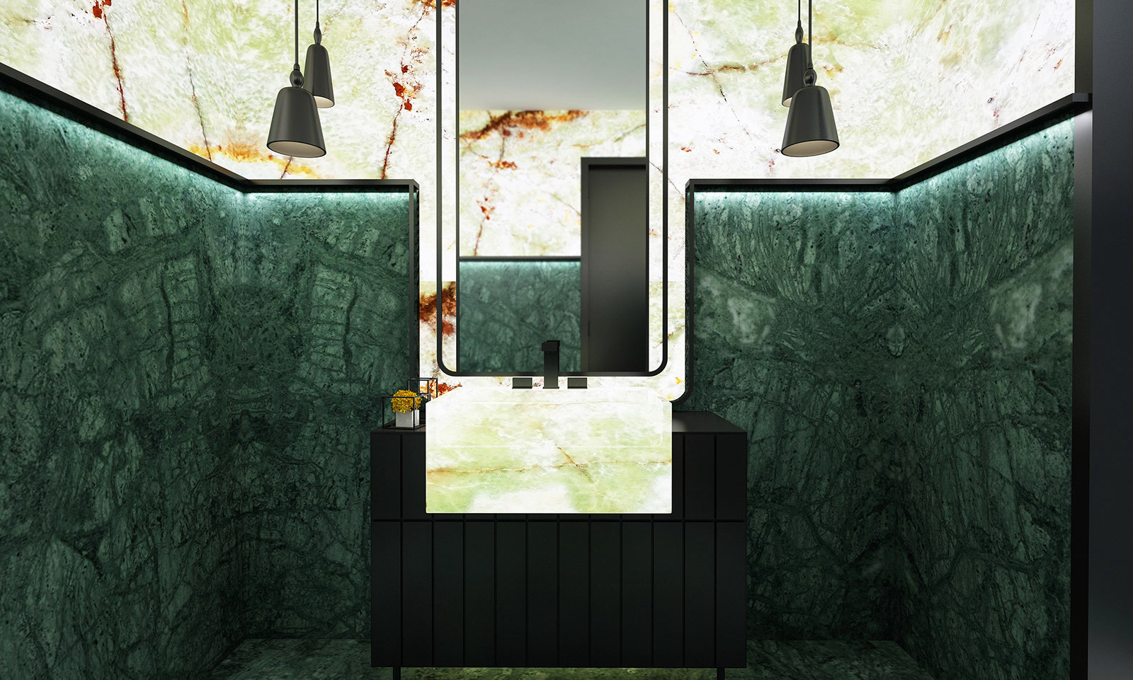 Green Onyx – faszinierender Naturstein in intensiven Grüntönen mit edler Transparenz. Luxuriös, einzigartig und ideal für exklusive Innenarchitektur.