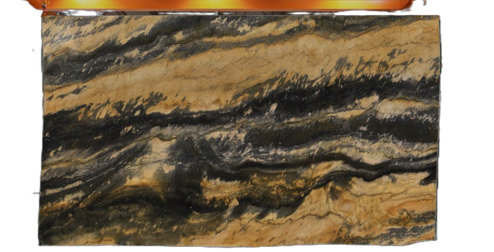 Jacaranda Quarzit – spektakulärer Naturstein in ausdrucksstarken Braun-, Gold- und Grautönen mit lebendiger, dynamischer Maserung.