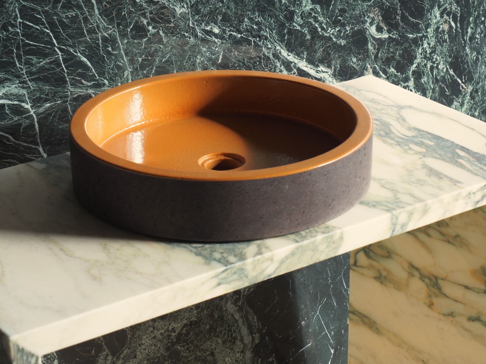 Ein Hauch von italienischer Eleganz für Ihr Badezimmer: Unser rundes Waschbecken Vulcano Edge vereint eine klare, moderne Form mit der faszinierenden Farbvielfalt von hochwertigem Naturstein. Die charakteristische Maserung verleiht jedem Stück Individualität und macht es zu einem echten Unikat.