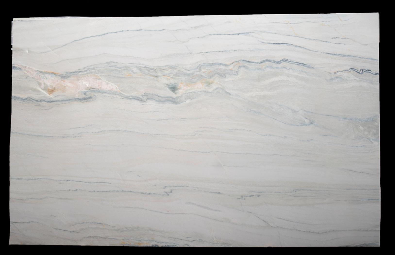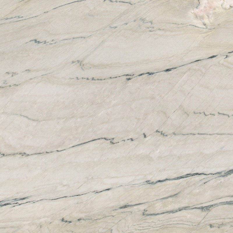 Macaubas Fantasy Quarzit – edler Naturstein mit sanften Grautönen, weißen, blauen und beigen Adern.