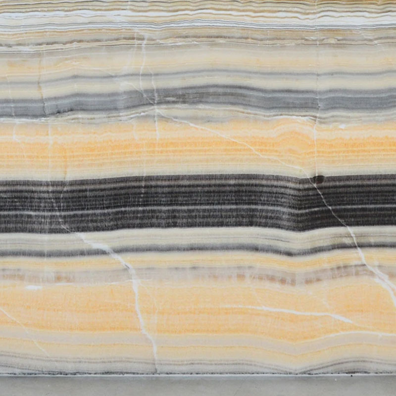 Onice Arco Iris Onyx – exklusiver Naturstein mit spektakulären gelben, grauen und schwarzen Streifen. Luxuriös, einzigartig und ideal für Design-Highlights.