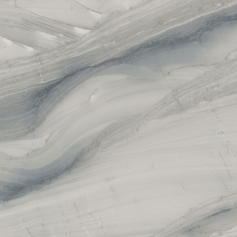 Polaris Quarzit – edler weißer Naturstein mit sanfter grauer Maserung und kristallklarer Struktur. Luxuriös, zeitlos und ideal für Innenarchitektur.