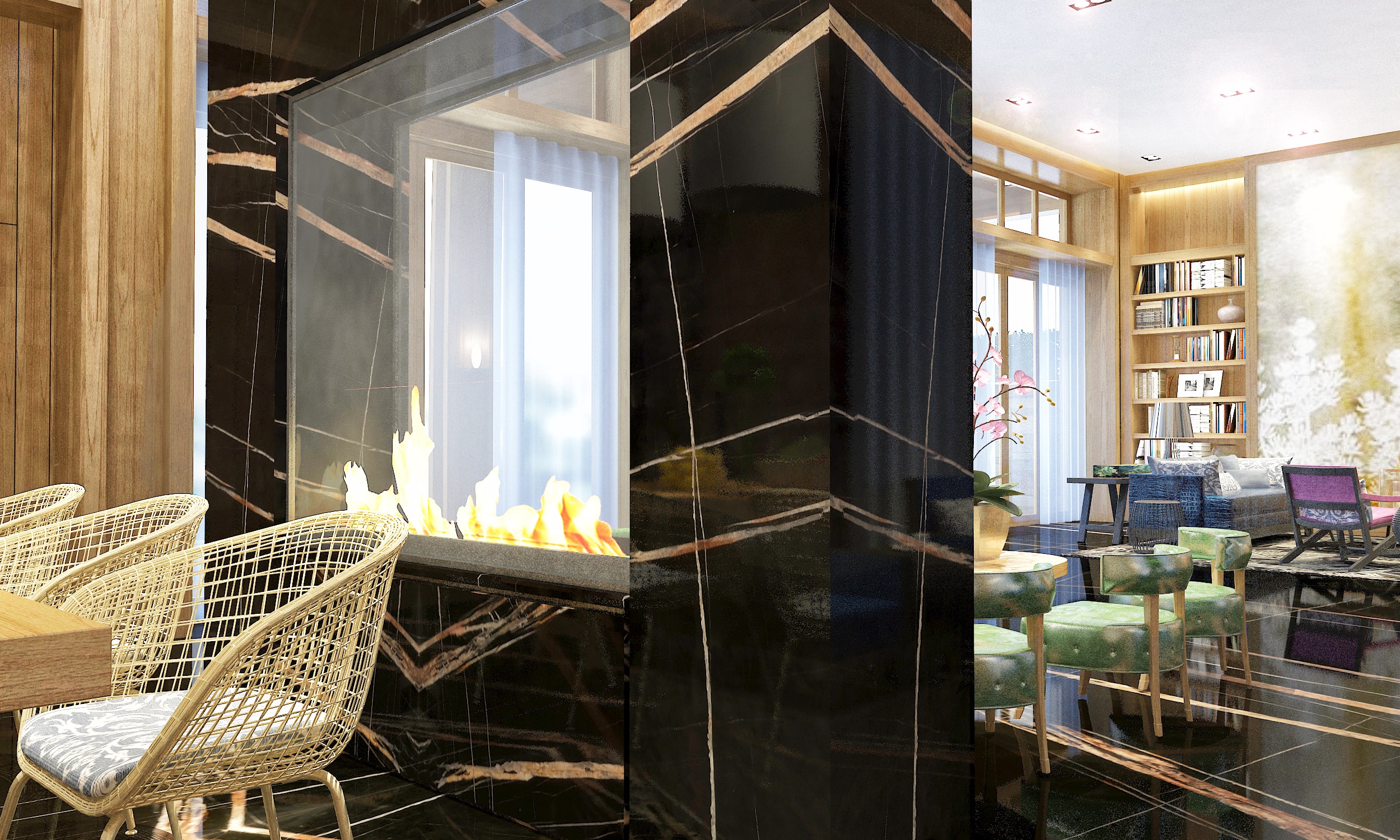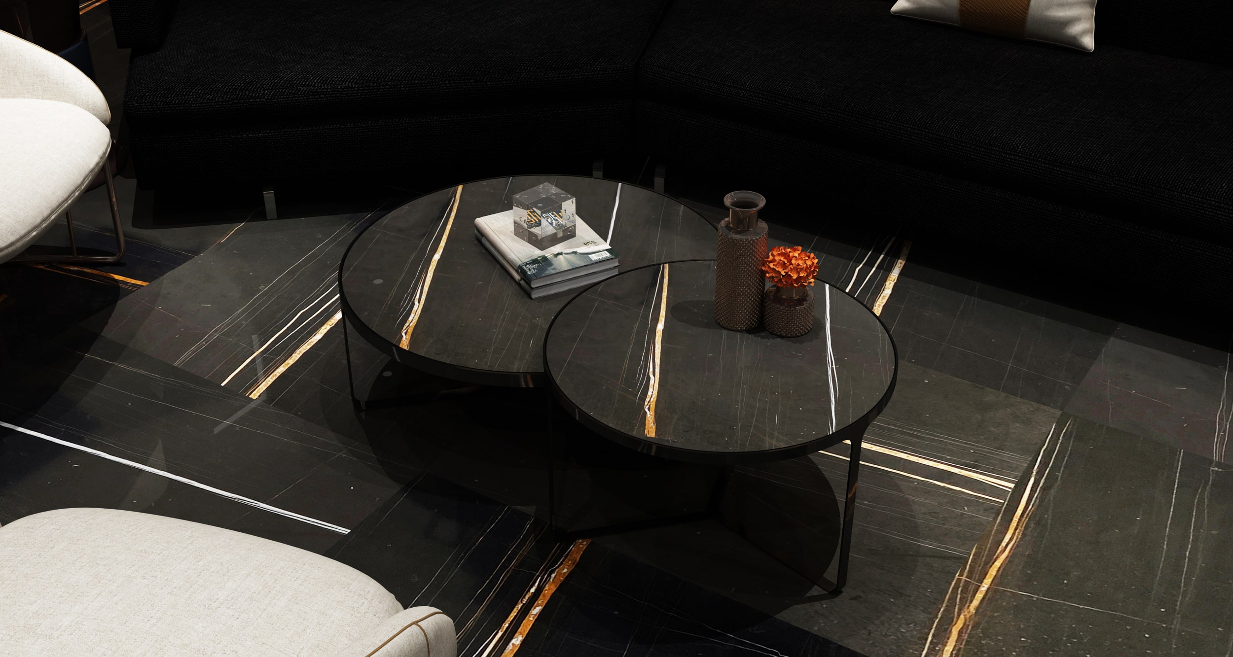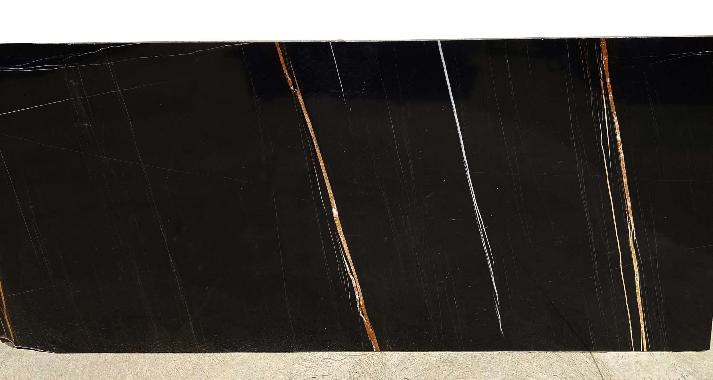 Sahara Noir Marmor – edler schwarzer Naturstein mit goldenen und weißen Adern. Luxuriös, modern und ideal für exklusive Innenarchitektur.