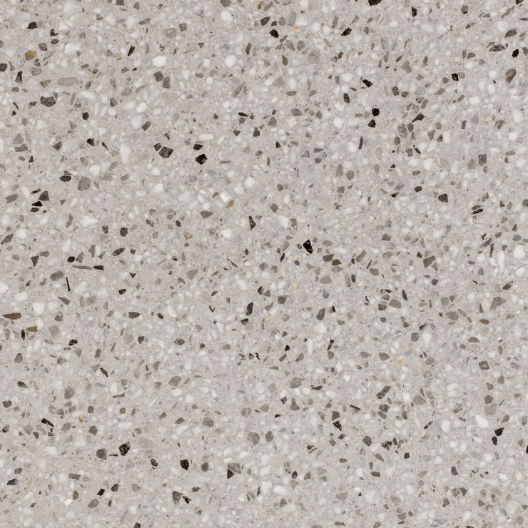 SB 103 Grigio Medio – Terrazzo-Platten werden aus sorgfältig ausgewählten Natursteinkörnungen hergestellt, die mit einem mineralischen Bindemittel vereint und zu massiven Platten verdichtet werden. Durch präzise Schleif- und Veredelungsprozesse entsteht ein langlebiger Werkstoff, der natürliche Optik mit außergewöhnlicher Robustheit kombiniert.