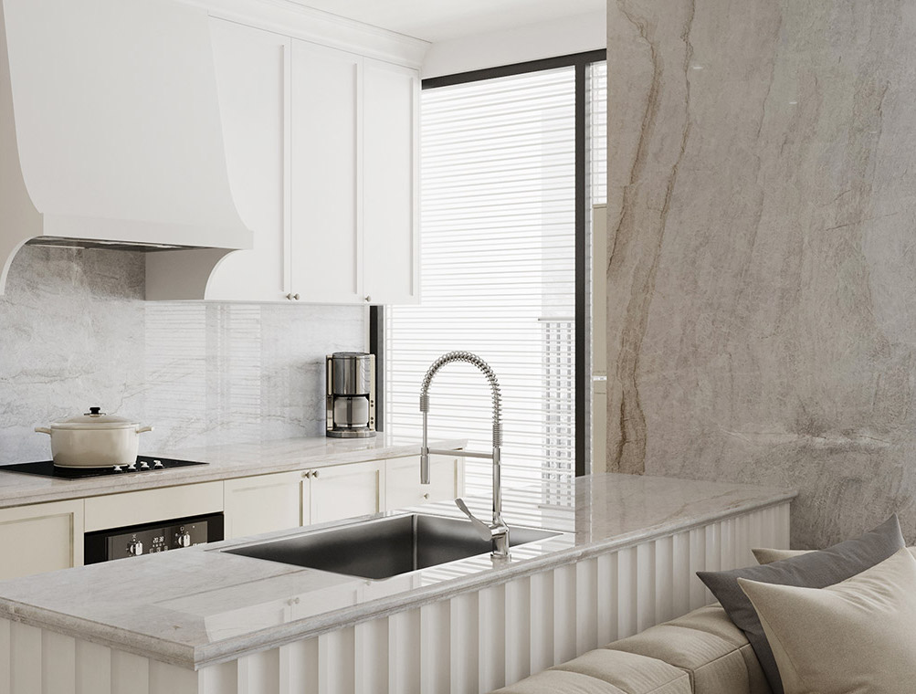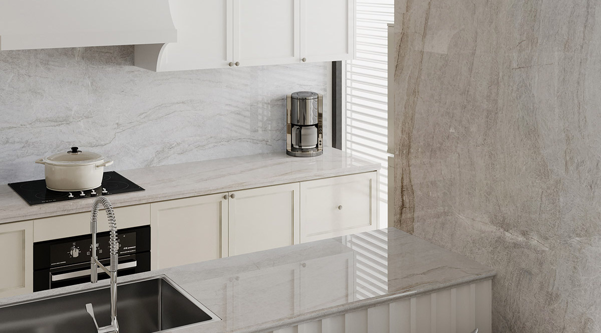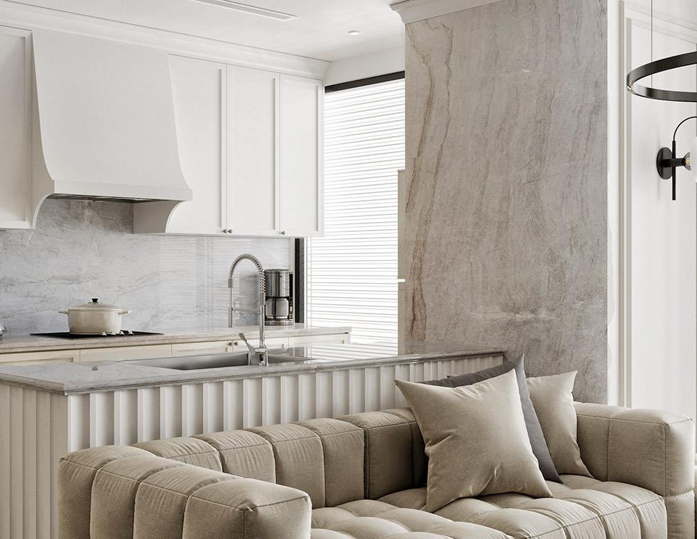 Taj Mahal Quarzit verbindet natürliche Eleganz mit höchster Beständigkeit – perfekt für stilvolle Wohn- und Geschäftsbereiche.