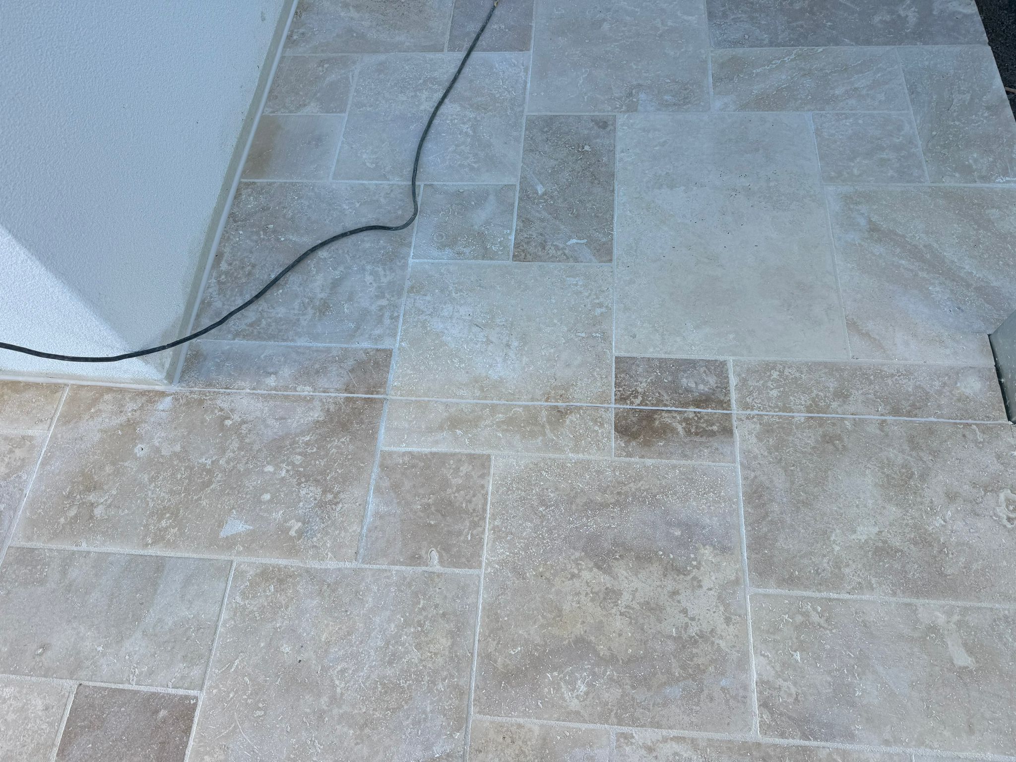 Die Platten wurden präzise im klassischen Römischverband verlegt. Dieses Muster setzt sich aus unterschiedlichen Steinformaten zusammen und wirkt sowohl natürlich als auch elegant. Durch die unregelmäßige, aber harmonische Anordnung entsteht ein einzigartiges Gesamtbild, das jeder Fläche Individualität verleiht.