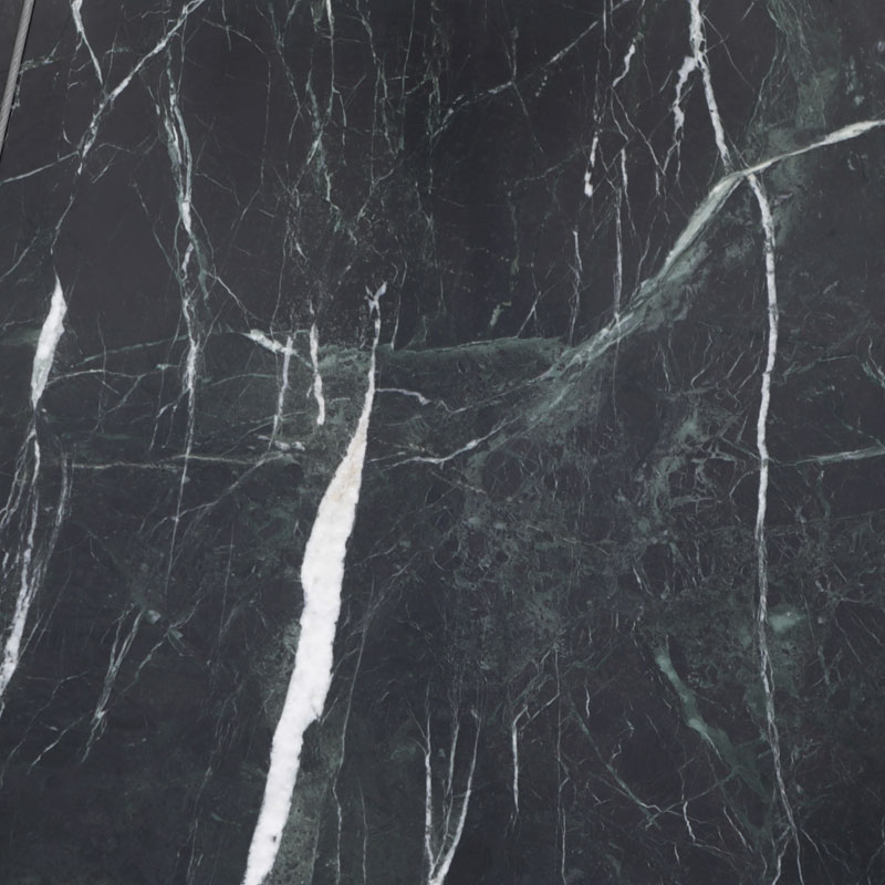 Verias Green Marmor – charaktervoller grüner Naturstein mit markanter weißer und dunkler Maserung. Luxuriös, edel und ideal für Innenarchitektur.