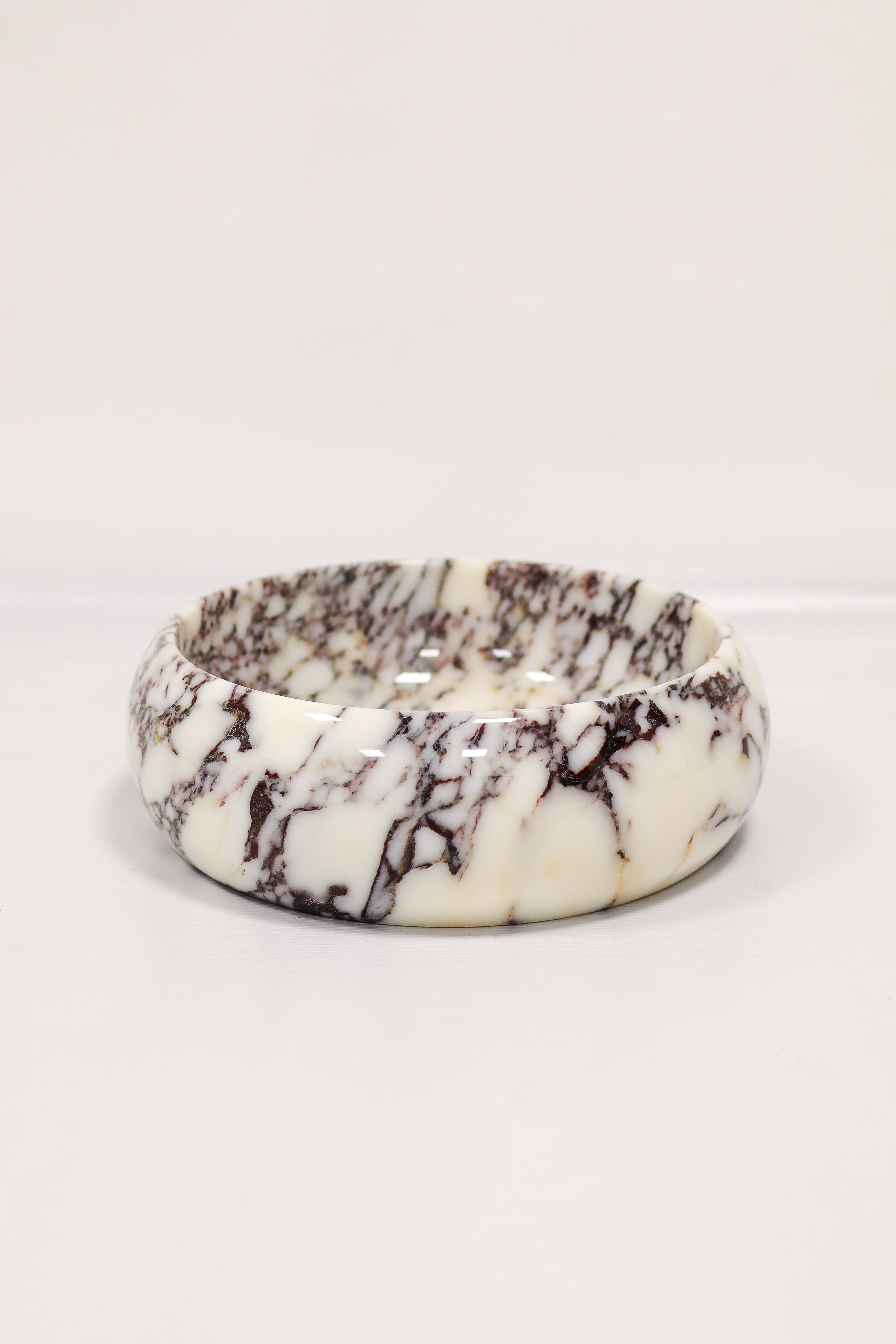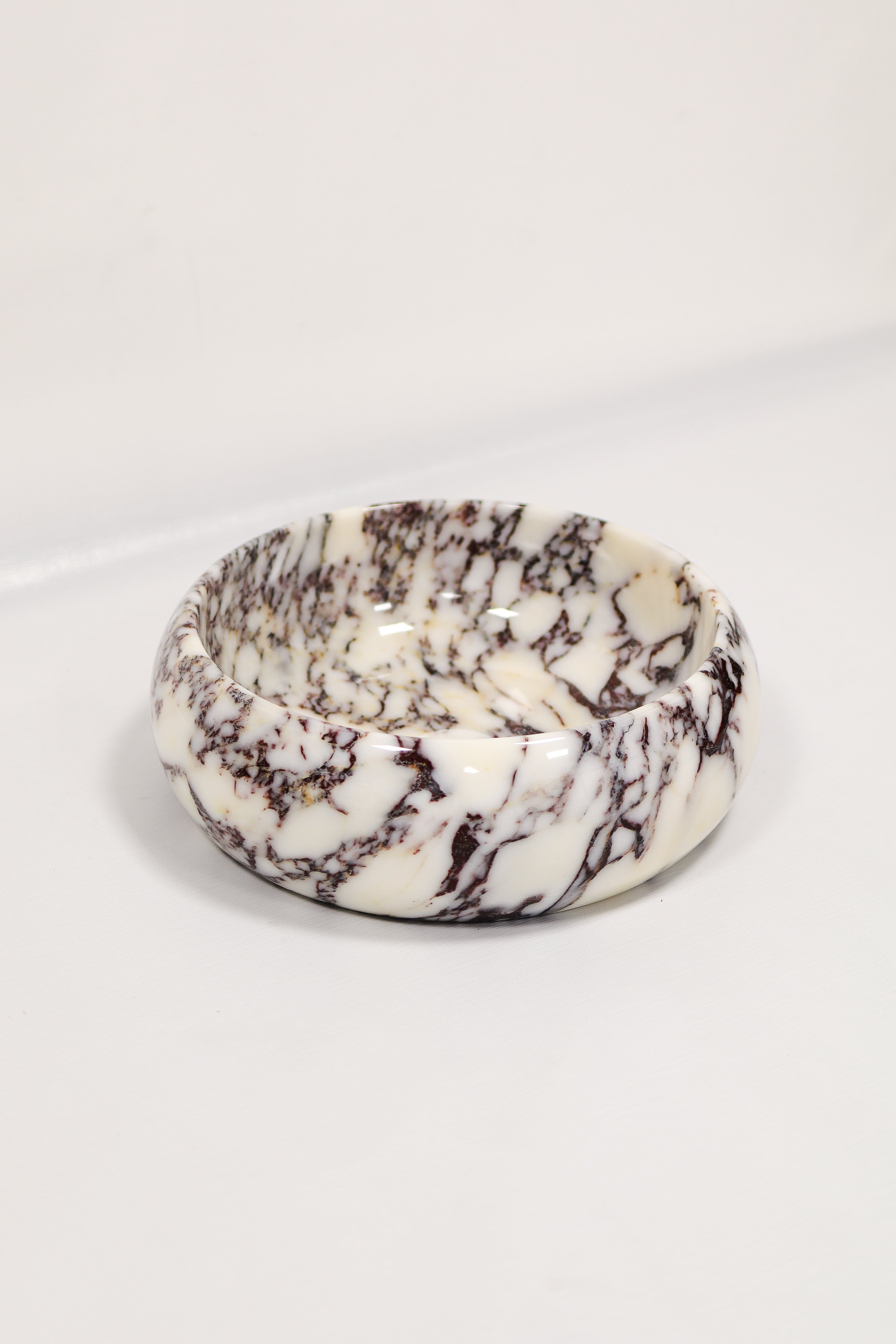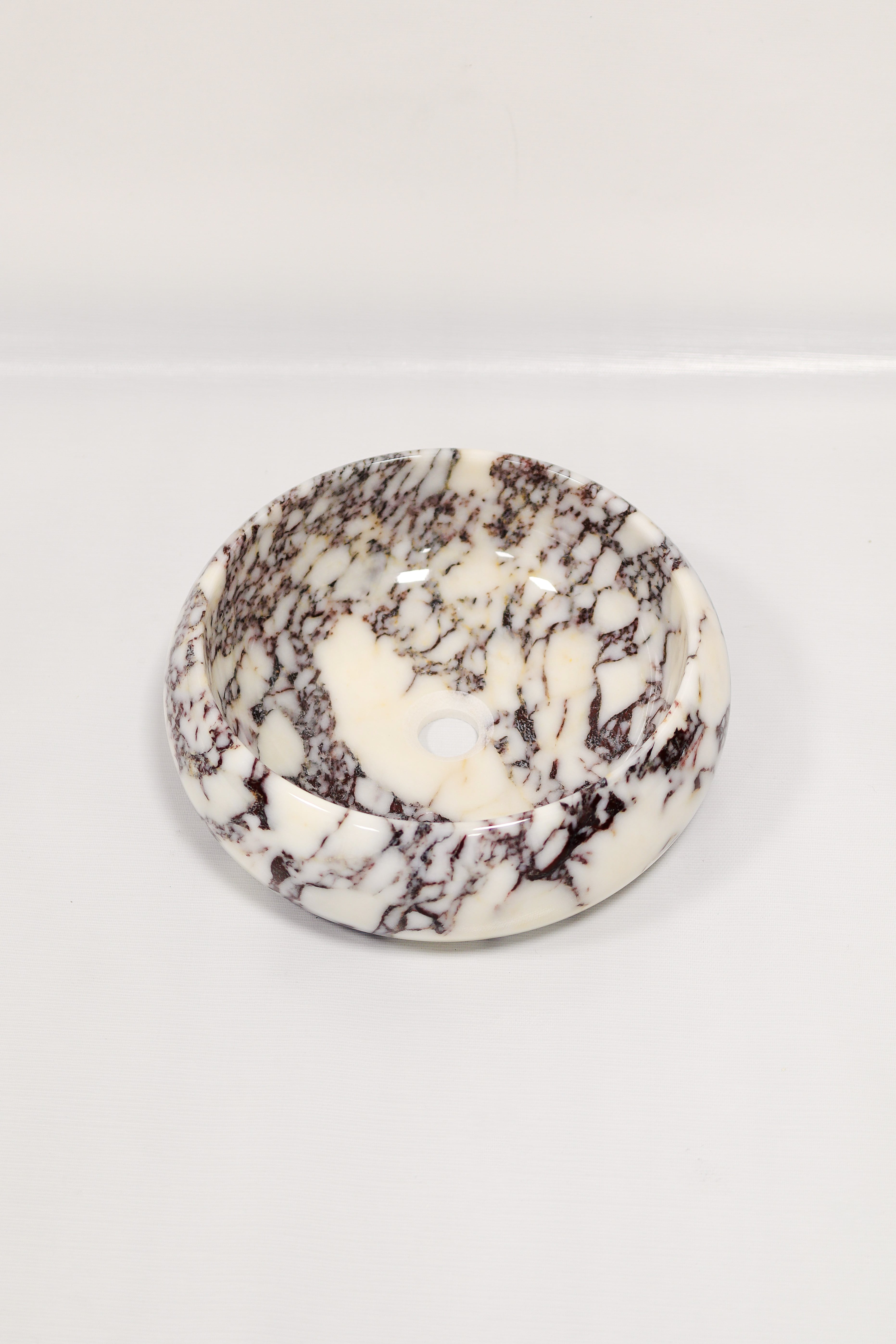 Ein Hauch von italienischer Eleganz für Ihr Badezimmer: Unser rundes Waschbecken aus edlem Marmor Calacatta Viola verbindet puristische Form mit der Einzigartigkeit natürlichen Steins. Jede Maserung erzählt ihre eigene Geschichte und macht jedes Stück zu einem Unikat.