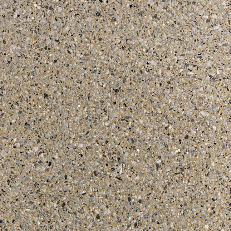 SB 107 Grigio Marron – Terrazzo slabs are manufactured from carefully selected natural stone aggregates, combined with a mineral binder and compacted into solid slabs. Through precise grinding and finishing processes, a durable material is created that combines natural aesthetics with exceptional robustness.