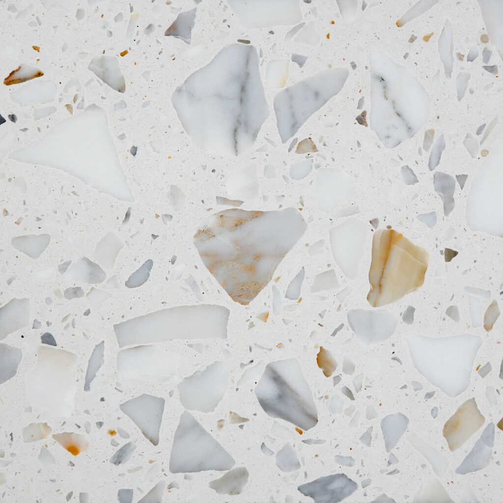 SB 290 Calcatta – Terrazzo slabs are manufactured from carefully selected natural stone aggregates, combined with a mineral binder and compacted into solid slabs. Through precise grinding and finishing processes, a durable material is created that combines natural aesthetics with exceptional robustness.